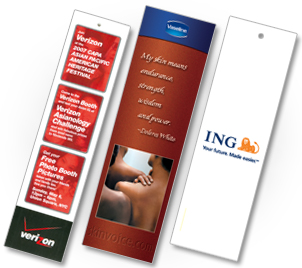 Promote a business, event or organization by creating or uploading your custom design to a bookmark. Bookmarks are printed on 16pt cts card stock making them durable and long lasting. Perforation and folding lines are also available, please email us at quotes@fbprints.com for more information.